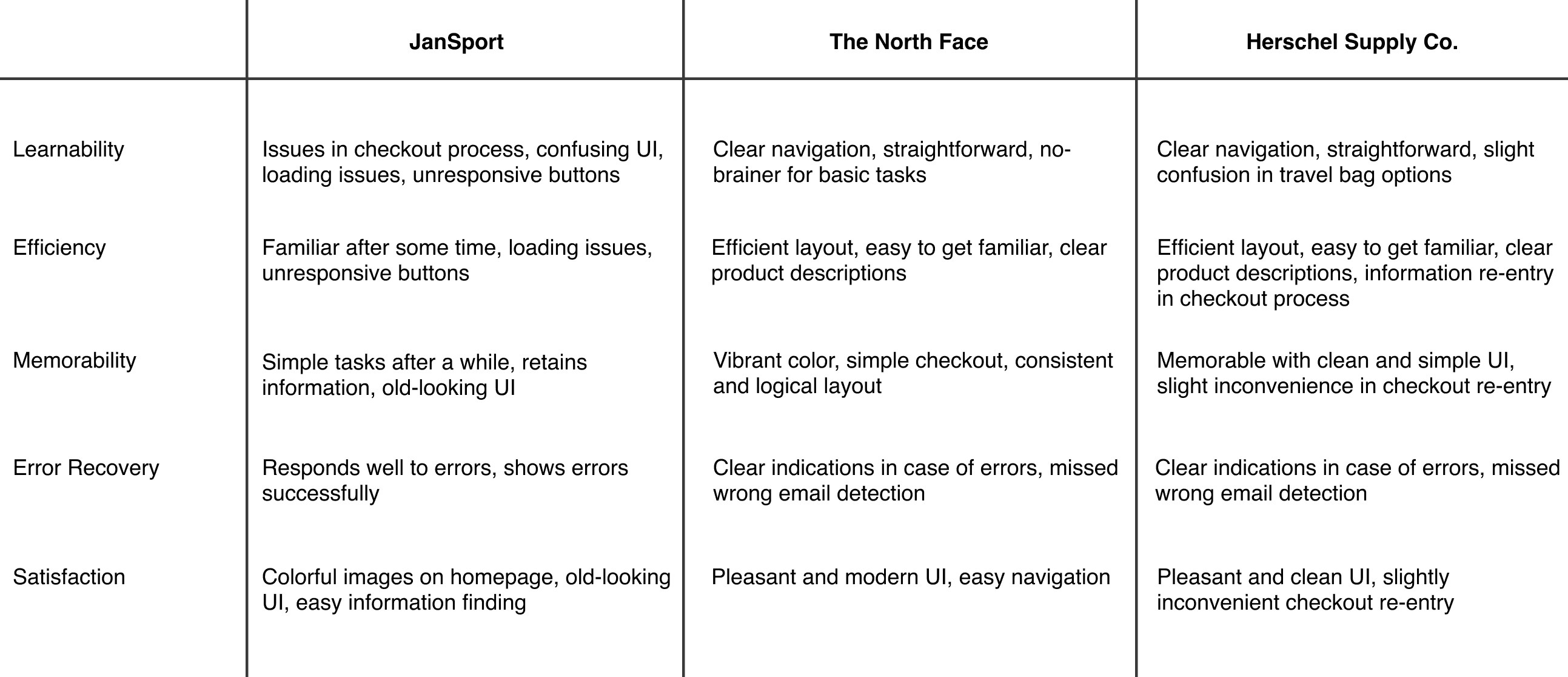 Overall, JanSport’s website lacks in efficient of design in comparison. The process of conducting this analysis unearthed useful and interesting insights, and gave me an opportunity to notice details.